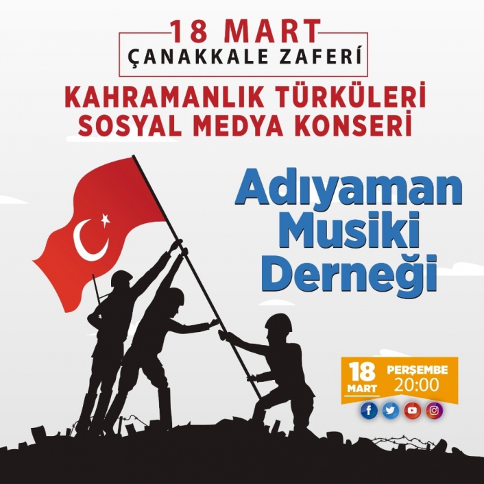 Korona Virüs tedbirleri kapsamında pandemi boyunca sosyal etkinliklerini sosyal medya hesaplarından online olarak takipçilerine sunan Adıyaman Belediyesi, 18 Mart Çanakkale Zaferi ve Şehitler Günü için de anlamlı bir konser yayını yapacak.