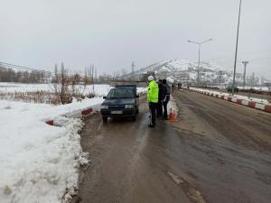 İlçe Emniyet Amirliği Trafik ekipleri, ilçe girişinde bulunan yol denetim noktasında yapılan yol kontrolünde araçları durdurarak kış lastiği kontrolü yaptı.