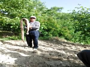 Halis Çoksıkar, ceviz bahçesinde çalıştığı esnada yılanı gördüğünü ve çok korktuğunu ifade ederek, sopa ile yılanı etkisiz hale getirdiğini söyledi.