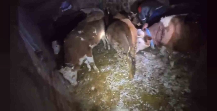 Adıyaman’da yoğun kar yağışına dayanamayan ahır çöktü. 20 büyükbaş hayvandan 3’ü telef oldu.