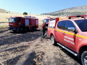 Adıyaman'da anız yangını bitişikteki ekili araziye sıçramadan söndürüldü.