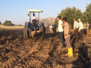 Köylüler traktörlerle yaklaşık 1 saat süren çalışmanın ardından yangın büyümeden söndürdü.