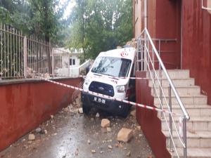 Ölen ya da yaralananın olmadığı kazada Ambulans hurdaya dönerken Aile sağlığı merkez binasının bir kısmı hasar gördü.
