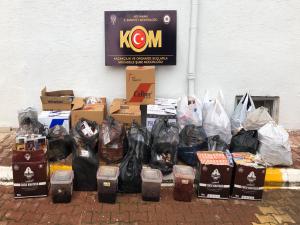 İl Emniyet Müdürlüğü ekipleri tarafından kent genelinde düzenlediği 'duman 9' operasyonunda işyerlerinde yapılan aramada 53 paket kaçak sigara, 407 kutu makaron, 89 kilogram nargile tütünü, 100 puro, 62 sahte bandrol ve 28 bin 225 deste sigara kağıdı ele geçirildi.