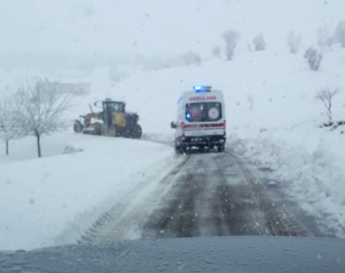 Ekipler Bozatlı köyünde fenalaşan bir hastaya yol kapalı olduğu için ulaşamayan ambulansın hastaya ulaşması için seferber oldu. İş makinesi önden yolu açtı, ardından ambulans köye ulaşarak hastaya müdahale etti.