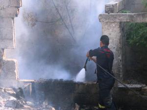 Fikret Avcıya ait olduğu kullanamayan evde yangın çıktı. Yangını gören vatandaşlar durumu itfaiye ekiplerine bildirdi.