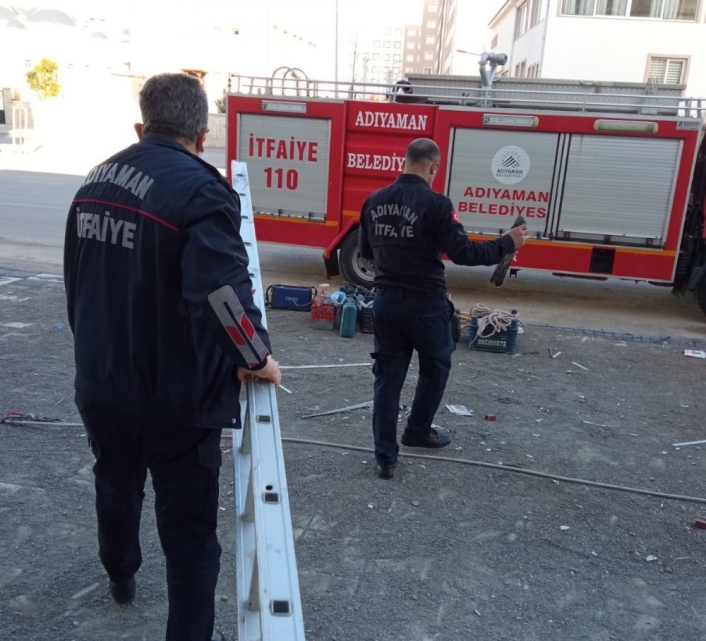 Adıyaman´da yapımı devam eden bir iş yeri içerisinde mahsur kalan atmaca itfaiye ekiplerince kurtarıldı.