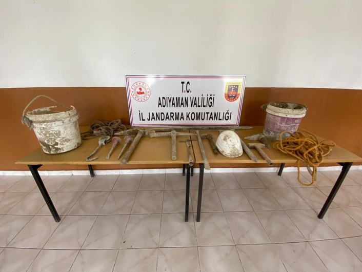 Edinilen bilgilere göre, Adıyaman´ın Tut ilçesine bağlı Yaylımlı Köyünde izinsiz kazı yapan şahısların ihbarını alan jandarma ekipleri kısa sürede harekete geçerek belirtilen bölgeye gitti.