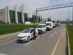 Kentin giriş çıkış noktalarında oluşturulan uygulama noktalarında İl Emniyet Müdürlüğü ekipleri tarafından kimlik bilgisi sorgulaması yapılırken izinsiz olan araçlar ise geri çevrilerek geçişlerine izin verilmedi.