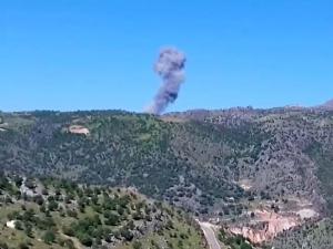 Savaş uçakları tarafından atılan bombaların ardından bölgeden dumanlar yükseldiği görülürken o anlar çevredeki yerleşim yerlerinde bulunan vatandaşlar tarafından cep telefonu ile görüntülendi.