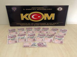 Adıyaman Emniyet Müdürlüğü Trafik Denetleme Şube Müdürlüğü ekipleri Tütüncüler Pazarında devriye görevi esnasında sahte para ile esnafı dolandırmaya çalışan M.B. isimli şahsı fark etmesi üzerine, şahıs üzerinde bulunan sahte 200 TL' lik banknotları atarak kaçmaya çalıştı.