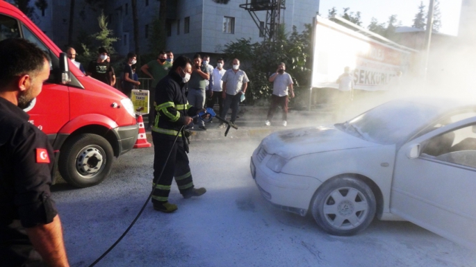 İtfaiye ekiplerince söndürülen otomobilde maddi hasar meydana geldi.