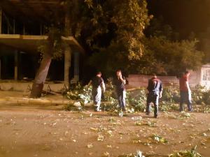 Devrilen ağaçlar, ihbarla olay yerine gelen itfaiye ekipleri tarafından kesilerek götürüldü.