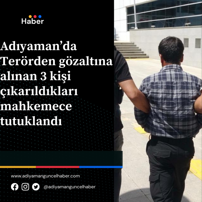 Adıyaman Cumhuriyet Başsavcılığı tarafından yürütülen soruşturma çerçevesinde gözaltına alınan 3 şahıs, çıkarıldıkları mahkemece tutuklandı.