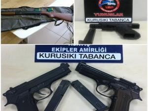 Adıyaman İl Emniyet Müdürlüğüne bağlı ekiplerince yapılan çalışmalar kapsamında tüfek, kuru sıkı tabancalar ele geçirildi.