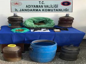 Operasyonda, evde yapılan aramada 6 kilo 500 gram uyuşturucu, slaj üzerine enjekteli malzeme, 6 kilogram el yapımı şarap ele geçirildi. Uyuşturucu ve ele geçirilen malzemelere el konulurken şüpheli M.Y. gözaltına alındı. Gözaltına alınan şüpheli sorgulanmak üzere İl Jandarma Komutanlığına götürüldü.