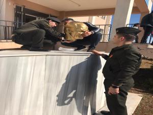Askerlik Şubesi Başkanı Personel Yüzbaşı Yasin Gündoğmuşun girişimleri sonrasında ressam Zafer Kıraç ile birlikte Atatürk büstünün onarım aşaması 1 hafta sürdü.
