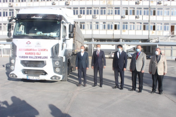 Adıyaman Valiliği ve Adıyaman Belediyesi tarafından İzmirli depremzedelere verilmek üzere hazırlanan yardım tırı yola çıktı.