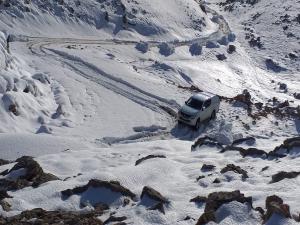 Hava sıcaklığının eksi derecelerde olduğu ve kar kalınlığının yer yer 1 metreye ulaştığı Nemrut Dağı'nın karla kapanan yolu Adıyaman İl Özel İdare Ekipleri tarafından yol açma çalışmaları sürüyor.