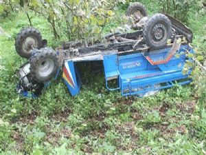 kontrolden çıkarak devrildi. Kazada tarım aracı üzerinde bulunan 5 kişi