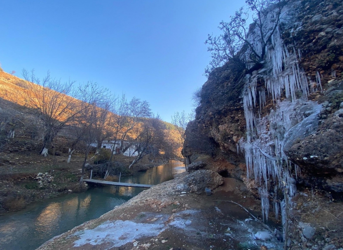 Adıyaman merkez Pirin Mevkiinde gece saatlerinde hava sıcaklığının eksi derecelere düşmesiyle birlikte su kaynakları buz tuttu. Kayalarda akan suyun donarak buz sarkıklarına dönüşmesi ortaya oldukça güzel manzara çıkarttı. Doğa yürüyüşüne çıkan bazı vatandaşlar karşılaştıkları buz sarkıklarını görüntüleyerek hatıra fotoğrafları çekti. Yürüyüş sırasında oldukça güzel bir manzarayla karşılaştıklarını dile getiren vatandaşlar, "Gündüzleri havalar güneşli ve bahar havasında geçerken geceleri ise oldukça soğuk oluyor. Gece saatlerinde havaların eksi derecelere kadar düşmesiyle burada bulunan su kaynakları tamamen buz tutmuş" diye konuştu.