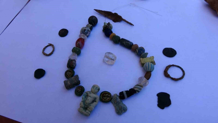 Hellenistik Döneme tarihlenen 2100 yıllık, hypoge mezarda bir adet Mısır kökenli Tanrı Pataikos tasvirli fayans amulet (nazarlık, muska) ve yanı sıra farklı amuletler ile farklı tip ve cinste boncuklar bulundu.