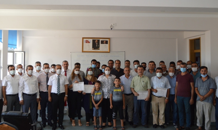 Adıyaman´ın Besni Fatih Sultan Mehmet Ortaokulunda faaliyet gösteren mesleki eğitim kursu sonunda 42 kişi lise diploması ve ustalık belgesi almaya hak kazandı.