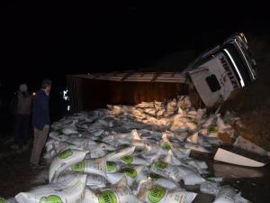 Kazada TIR'da bulunan gübreler etrafa saçılırken, yol bir süre trafiğe kapandı.