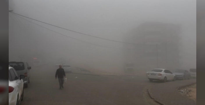 İlçe merkezinde ve ilçenin özellikle yüksek kesimlerde yoğun sis nedeniyle görüş mesafesi yer yer 5 metreye kadar düşerken, şehir merkezinde ise görüş mesafesinin yaklaşık 10 metreye kadar geriledi.
