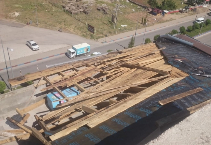 Bina sakinlerinden Bekir Öztürk, "Her fırtına çıktığında bizim binamızın çatısı uçuyor. 4 defadır binamızın çatısı yıkılıyor. Çatının diğer parçasının da uçmasından endişe duyuyoruz. Binayı yapan müteahhitte 200 bin TL´lik tazminat davası açacağız. Sağlam yapılmadığı için her defasında yıkılıyor. Bir binanın çatısı 4 defa yıkılır mı?" diye konuştu.