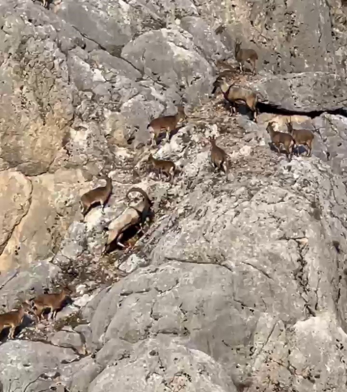Dağ keçileri cep telefonu kameralarına yakalandı