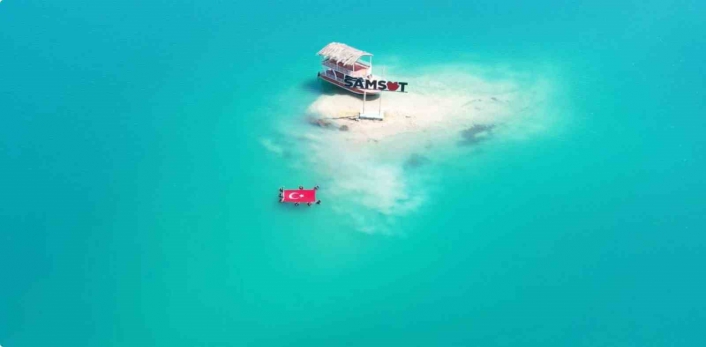 Gölün turkuaz rengi suları üzerinde açılan ay-yıldızlı bayrak, dronla görüntülenirken ortaya anlamlı kareler çıktı. Etkinlikte ayrıca göl kıyısına yerleştirilen "Samsat" yazısı ve dekoratif bir tekne görsel olarak dikkat çekti.