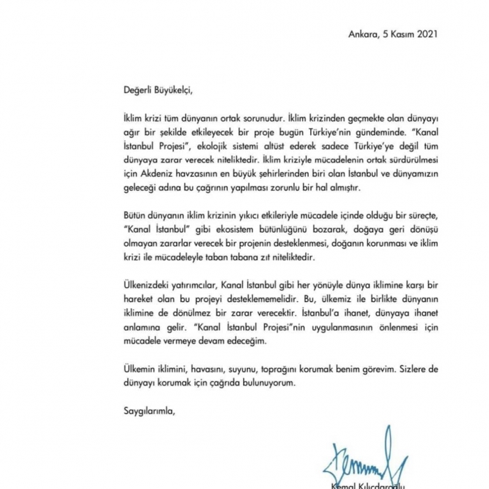GMDK Başkanı Aydın; Türk siyasetinde bir yere gelememiş, vizyondan ve samimiyetten uzak, Türkiye’nin geleceği için bir proje üretemeyen ve Ülkesini yabancılara şikayeti alışkanlık haline getiren CHP Genel Başkanı Kılıçdaroğlu şimdi de Türkiye'nin en büyük projesi olan Kanal İstanbul'un durdurulması için elçilere mektup yazmış. Sanki Türkiye'nin muhalefet partisi genel başkanı değil TÜRKİYE'YE MUHALEFET partisi genel başkanı?