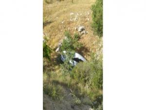 Adıyaman'da, sürücüsünün direksiyon hakimiyetini kaybettiği hafif ticari araç şarampole yuvarlandı.