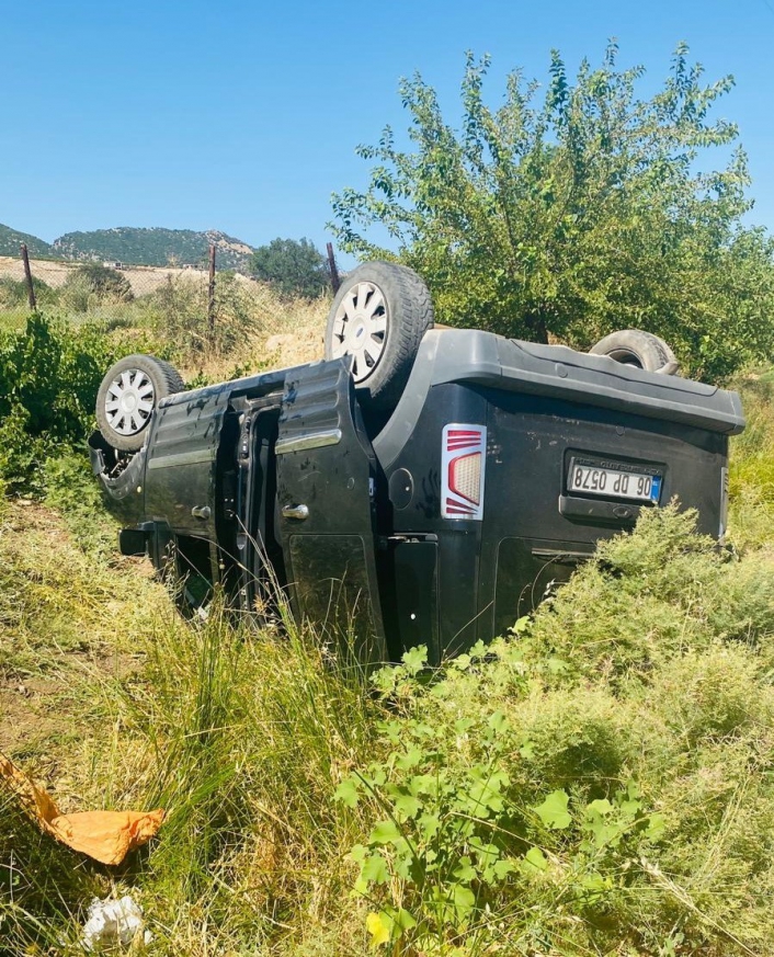 Adıyamanda direksiyon hakimiyeti kaybolduktan sonra takla atan hafif ticari aracın sürücüsü yaralandı.