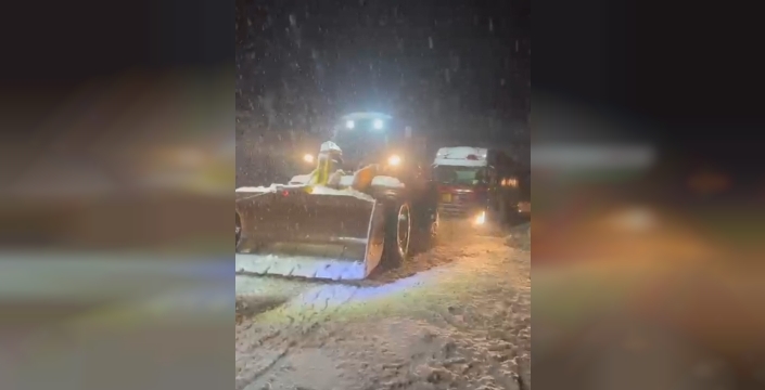 Kar kalınlığının 1 metreyi geçtiği Adıyaman’ın Sincik ilçesine sıkıştırılmış doğalgaz taşıyan tırın ilçeye ulaşması için 3-4 i