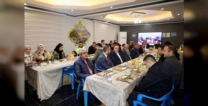 Kaymakam Yıldız ve beraberindekiler, karavananın başına geçerek öğrencilere yemek dağıttı. Daha sonra öğrencilerle birlikte sıraya giren protokol üyeleri, yemeklerini alarak aynı sofrada iftar açtı.