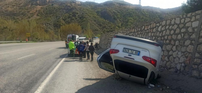 Adıyaman´ın Gölbaşı ilçesinde istinat duvarına çarpan otomobilin takla atması sonucu 4 kişi yaralandı.