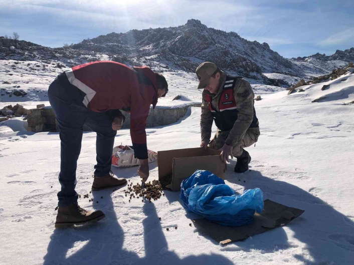 Adıyaman´ın Gerger ilçesinde jandarma ekipleri yaban hayvanları için doğaya yiyecek bıraktı.