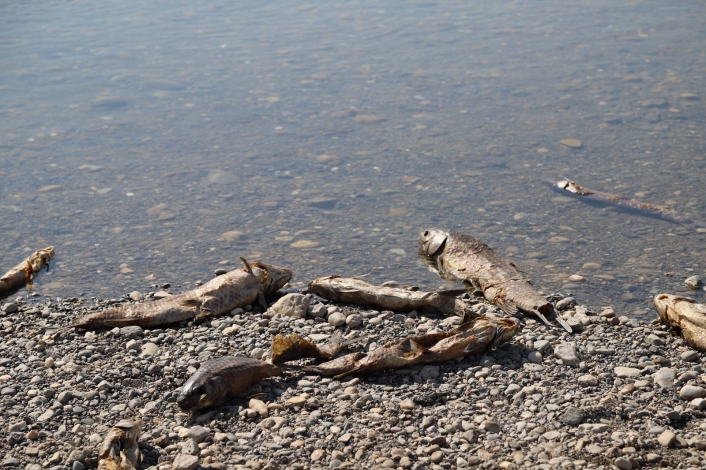 Adıyaman´ın Kahta Çayı´nda telef olan binlerce balık kıyılara vurdu.