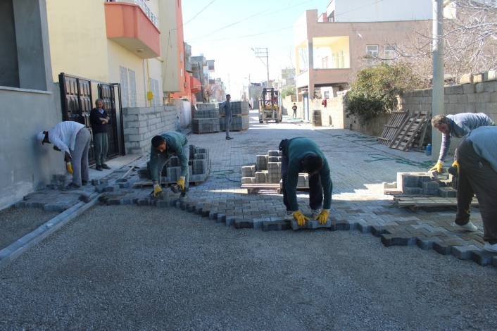 Adıyaman´ın Kahta ilçe Belediyesi´nin, ilçe genelinde aşamalı olarak yürüttüğü kilitli parke taşı döşeme çalışmaları devam ediyor.