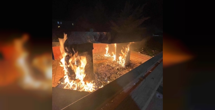 Kahta’da parktaki bank ateşe verildi