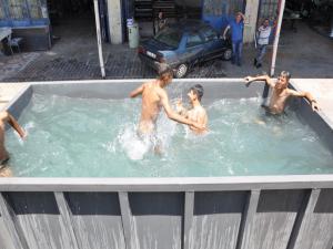 Arslan, "İşyeri çalışanlarımızın diledikleri anda serinlemek için denize yada havuza gitme imkanları yok. Bizde Ali Payam ustamızın ve diğer ustalarımızın çalışmaları doğrultusunda kamyon kasasının etrafını kapatarak suyla doldurduk ve havuz haline getirdik. Şimdi çalışan işçi kardeşlerimiz fırsat buldukça kamyon kasasına girerek serinliyorlar. Bazı müşterilerimizde havuza giriyor. Sıcaktan bunalma sorununu bir nevi de olsa çözdük." dedi.
