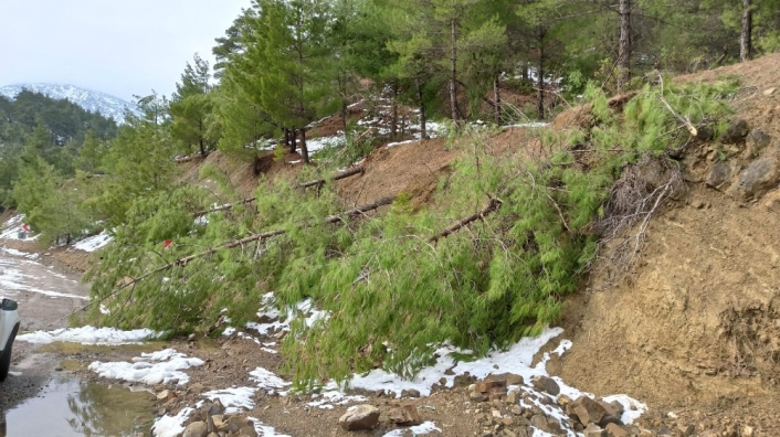 Kar yağışı Adıyaman´ın Gölbaşı ve Kahramanmaraş´ın birçok ilçesinde çam ağaçlarını devirdi.