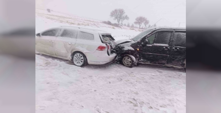 Karlı yolda araçlar çarpıştı: 1 yaralı