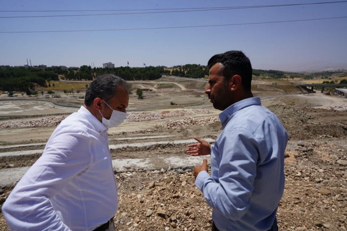 Adıyaman Belediye Başkanı Süleyman Kılınç, yapımı devam eden Millet Bahçesinde incelemelerde bulundu.