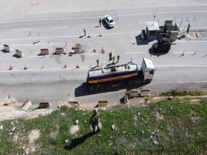 Ekiplerin çalışması havadan görüntülenirken kurallara uymayan sürücüler ise geri çevrildi.