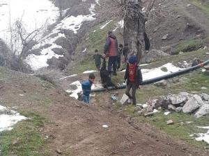 İlçeye bağlı Helül köyünde çiftçilik yapan Hayri Aygün'e ait ahıra geç saatlerde yoğun kar yağışının yaşandığı bölgede yem bulamayan kurtlar ahıra saldırdı.