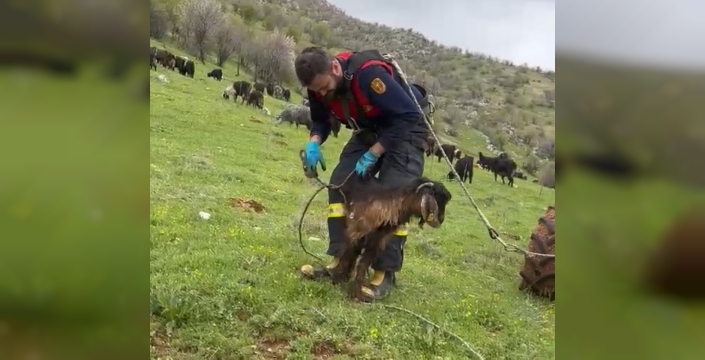 Adıyaman’ın Gölbaşı ilçesinde su kuyusuna düşen bir keçi, itfaiye ekiplerinin müdahalesiyle kurtarıldı.