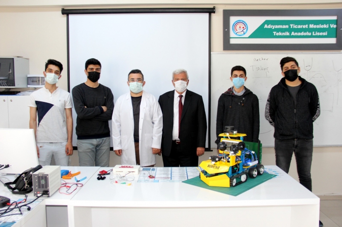Adıyaman Ticaret Meslek ve Teknik Anadolu Lisesi Bilişim Teknolojileri Öğretmeni ve Ar-Ge Sorumlusu Orhan Güneş öncülüğünde öğrencilerin tasarladığı robot ile TÜBİTAK ve TEKNOFEST´e başvurdu.